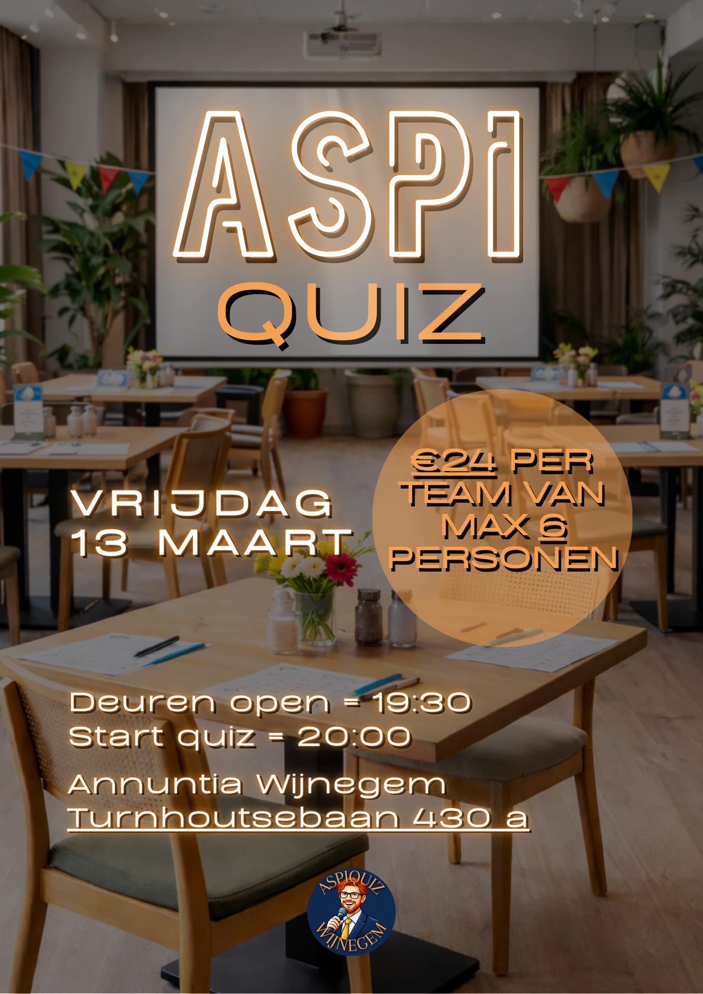 🧠 De Aspiquiz komt eraan! Heb jij een parate kennis waar Wikipedia jaloers op is, of heb je gewoon zin in een topavond met vrienden? Zet alvast 13 maart in je agenda voor de Aspiquiz! We verwachten jullie in Zaal Huldenberg (Annuntia) voor een gezonde dosis competitie en plezier. 🔹 Wanneer? 13 maart. Deuren 19u30,